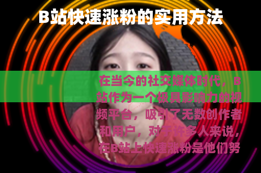 在当今的社交媒体时代,B站作为一个极具影响力的视频平台,吸引了无数创作者和用户,对于许多人来说,在B站上快速涨粉是他们努力追求的目标,以下是一些在B站快速涨粉的有效方法。 质量是关键,要制作出高质量、有吸引力的视频内容,这意味着要投入足够的时间和精力进行策划、拍摄和剪辑,确保视频的画面清晰、稳定,声音清晰可听,在内容选题上,要关注当下热门话题和用户兴趣点,结合自身的特长和风格,创造出独特的视频内容,这样才能在众多视频中脱颖而出,吸引更多用户的关注和喜爱。