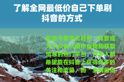 在当今数字化时代,抖音成为了众多人展示自我和获取信息的热门平台,许多人都希望能在抖音上获得更多的关注和流量,而“全网最低价自己下单刷抖音”的话题也逐渐引起了大家的兴趣。