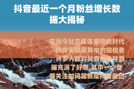 在当今社交媒体盛行的时代,抖音无疑是其中的佼佼者,许多人都对抖音的各种数据充满了好奇,其中一个备受关注的问题就是抖音最近一个月涨了多少粉丝。