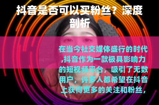 在当今社交媒体盛行的时代,抖音作为一款极具影响力的短视频平台,吸引了无数用户,许多人都希望在抖音上获得更多的关注和粉丝,以提升自己的影响力和知名度,一个问题便应运而生:抖音可以买粉丝吗?