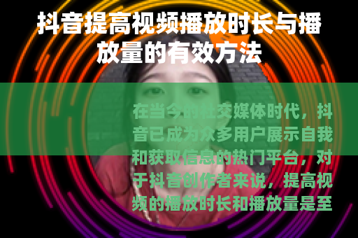 在当今的社交媒体时代,抖音已成为众多用户展示自我和获取信息的热门平台,对于抖音创作者来说,提高视频的播放时长和播放量是至关重要的,这不仅能增加账号的曝光度,还能吸引更多的粉丝,从而实现更好的发展,以下是一些在抖音上提高视频播放时长和播放量的实用方法。 质量是关键,要确保视频内容具有吸引力、趣味性和实用性,可以从用户的兴趣点出发,选择热门话题进行创作,这样能更容易引起观众的共鸣,美食类账号可以分享独特的食谱制作过程,旅游类账号可以展示美丽的风景和有趣的旅行经历,知识类账号可以传授专业的技能和知识等,通过提供有价值的内容,观众会更愿意花时间观看视频,并且有可能反复观看,从而提高播放时长。