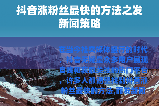 在当今社交媒体盛行的时代,抖音无疑是众多用户展现自我和获取关注的热门平台,许多人都渴望找到抖音涨粉丝最快的方法,而发新闻在其中是一种颇具潜力的策略。