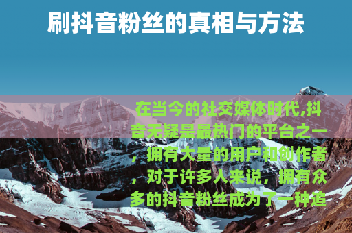 在当今的社交媒体时代,抖音无疑是最热门的平台之一,拥有大量的用户和创作者,对于许多人来说,拥有众多的抖音粉丝成为了一种追求和目标,关于刷抖音粉丝,这里面究竟有哪些门道呢?