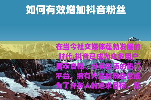 在当今社交媒体蓬勃发展的时代,抖音已成为众多用户展示自我、分享生活的热门平台,拥有大量的粉丝也成为了许多人的追求目标,怎样才能在抖音上吸引更多的粉丝呢?