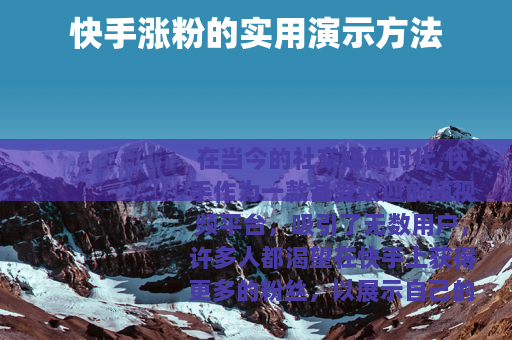 在当今的社交媒体时代,快手作为一款备受欢迎的短视频平台,吸引了无数用户,许多人都渴望在快手上获得更多的粉丝,以展示自己的才华、分享生活点滴或推广自己的业务,究竟该如何在快手上实现涨粉呢?下面就为大家带来一些实用的演示方法。