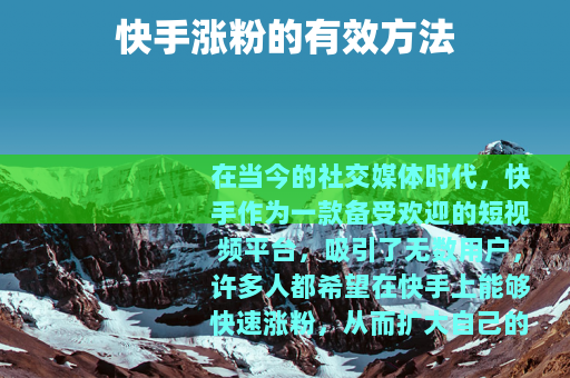在当今的社交媒体时代,快手作为一款备受欢迎的短视频平台,吸引了无数用户,许多人都希望在快手上能够快速涨粉,从而扩大自己的影响力和社交圈,以下是一些关于快手如何涨粉丝的实用方法。