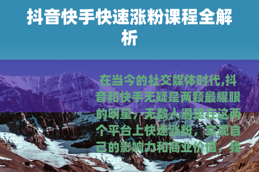 在当今的社交媒体时代,抖音和快手无疑是两颗最耀眼的明星,无数人渴望在这两个平台上快速涨粉,实现自己的影响力和商业价值,我们就来全面解析一下抖音快手快速涨粉的全部课程。