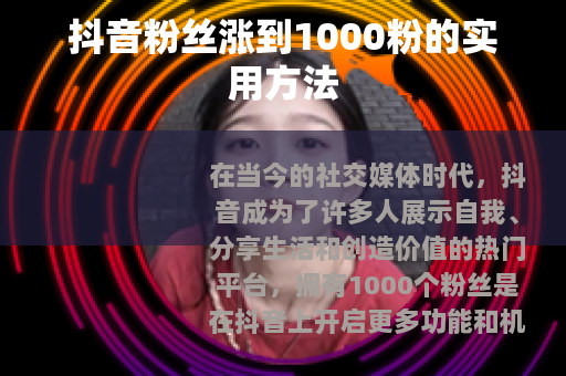 通过以上这些方法的综合运用,你就能够在抖音上逐步积累起自己的粉丝群体,实现粉丝量突破1000粉的目标,在抖音的世界里开启属于自己的精彩篇章。