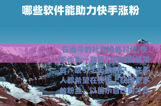 在当今的社交媒体时代,快手作为一款热门的短视频平台,吸引了无数用户,许多人都希望在快手上获得更多的粉丝,以展示自己的才华或推广自己的产品和服务,究竟什么软件可以让快手涨粉呢?