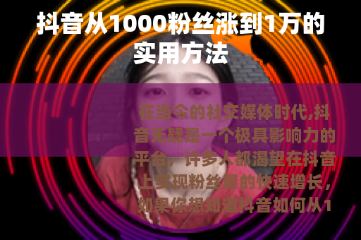 在当今的社交媒体时代,抖音无疑是一个极具影响力的平台,许多人都渴望在抖音上实现粉丝量的快速增长,如果你想知道抖音如何从1000粉丝涨到1万,那么以下这些方法或许能助你一臂之力。