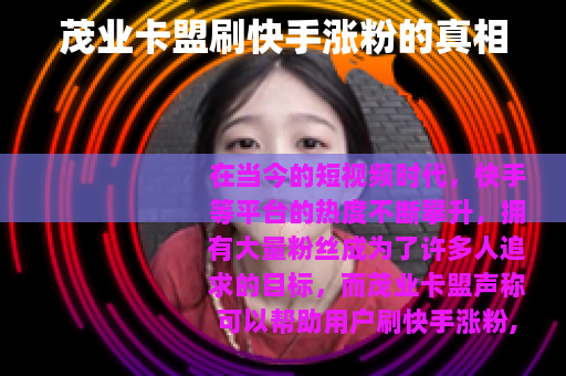 在当今的短视频时代,快手等平台的热度不断攀升,拥有大量粉丝成为了许多人追求的目标,而茂业卡盟声称可以帮助用户刷快手涨粉,这一现象引起了广泛的关注。