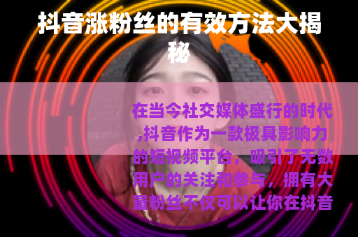 在当今社交媒体盛行的时代,抖音作为一款极具影响力的短视频平台,吸引了无数用户的关注和参与,拥有大量粉丝不仅可以让你在抖音上获得更多的曝光和认可,还可能为你带来各种商业机会和收益,如何在抖音上快速涨粉丝呢?我们就来为大家揭秘一些实用的方法。