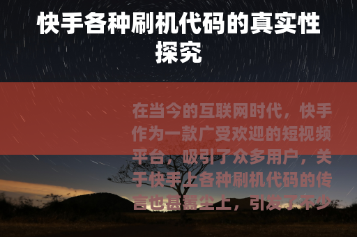 在当今的互联网时代,快手作为一款广受欢迎的短视频平台,吸引了众多用户,关于快手上各种刷机代码的传言也甚嚣尘上,引发了不少人的好奇与疑问:快手各种刷机代码是真的吗?为什么会有这样的传言呢?