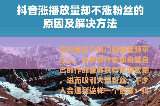 在抖音这个热门的短视频平台上,许多创作者都希望自己的作品能够获得高播放量,进而吸引大量粉丝,不少人会遇到这样一个困惑:抖音涨播放量但不涨粉丝,这究竟是怎么回事呢?