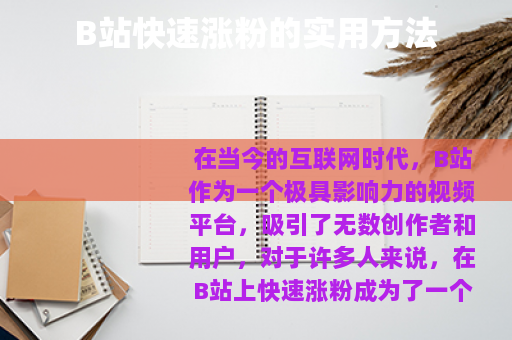 在当今的互联网时代,B站作为一个极具影响力的视频平台,吸引了无数创作者和用户,对于许多人来说,在B站上快速涨粉成为了一个重要的目标,如何在B站实现快速涨粉呢?以下是一些实用的方法。 质量是关键,要制作出有吸引力、有价值的视频内容,这意味着要深入了解你的目标受众,知道他们感兴趣的话题和需求,如果你面向的是年轻的游戏玩家群体,那么制作精彩的游戏攻略、搞笑的游戏实况解说等内容可能会大受欢迎,在内容创作过程中,要注重视频的剪辑、配乐、画面质量等方面,确保给观众带来良好的观看体验。