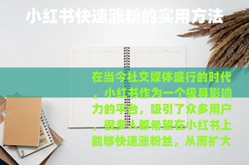在当今社交媒体盛行的时代,小红书作为一个极具影响力的平台,吸引了众多用户,很多人都希望在小红书上能够快速涨粉丝,从而扩大自己的影响力和社交圈,以下是一些可以帮助你在小红书上快速涨粉的有效方法。 的质量是关键,要确保你发布的笔记内容有价值、有趣且独特,可以分享自己的专业知识、生活经验、美妆技巧、美食制作等,如果你擅长烹饪,那么可以详细地分享一些独特的食谱,包括食材的准备、烹饪的步骤以及最终成品的展示,让读者能够从中获得实际的帮助和启发,用生动形象的图片和简洁明了的文字来呈现内容,会更吸引人的眼球。