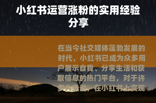 在当今社交媒体蓬勃发展的时代,小红书已成为众多用户展示自我、分享生活和获取信息的热门平台,对于许多人来说,在小红书上实现涨粉是他们努力的目标,以下是一些关于小红书运营涨粉的经验,希望能对大家有所帮助。 是关键,要确保你发布的笔记具有高质量和独特性,深入了解你的目标受众,明确他们的兴趣点和需求,然后根据这些来创作内容,无论是美妆、时尚、美食还是旅行等领域,都要提供有价值的信息,比如详细的美妆教程、实用的穿搭建议、美味的食谱或者小众的旅行攻略等,这样的内容能够吸引用户的关注,让他们觉得关注你能获得有用的知识和乐趣。