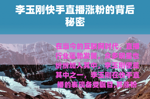 在当今的互联网时代,直播行业蓬勃发展,众多明星也纷纷加入其中,李玉刚便是其中之一,李玉刚在快手直播的表现备受瞩目,其涨粉速度更是令人惊叹。