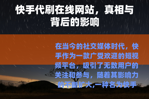 在当今的社交媒体时代,快手作为一款广受欢迎的短视频平台,吸引了无数用户的关注和参与,随着其影响力的不断扩大,一种名为快手代刷在线网站的现象也逐渐浮出水面。