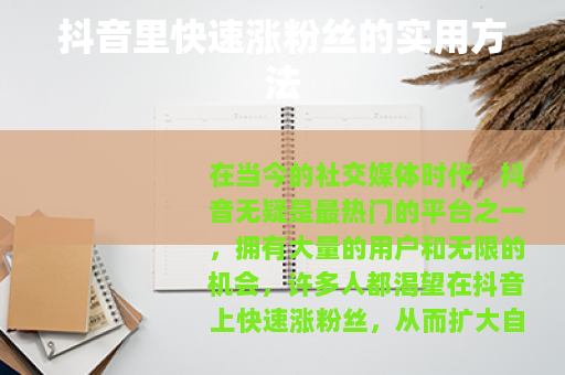 在当今的社交媒体时代,抖音无疑是最热门的平台之一,拥有大量的用户和无限的机会,许多人都渴望在抖音上快速涨粉丝,从而扩大自己的影响力和实现各种目标,以下是一些在抖音里快速涨粉丝的有效方法。