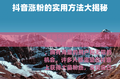 在当今的社交媒体时代,抖音无疑是最热门的平台之一,拥有海量的用户和无限的机会,许多人都渴望在抖音上获得大量粉丝,实现自己的影响力和价值提升,抖音怎么做能涨粉丝呢?以下是一些实用的方法。
