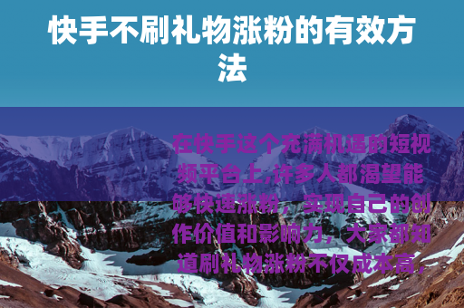 在快手上不刷礼物涨粉需要耐心和坚持,通过不断优化自己的内容和运营策略,逐步积累粉丝和人气,实现自己的涨粉目标,为自己在快手的创作之路打下坚实的基础。