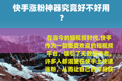 在当今的短视频时代,快手作为一款备受欢迎的短视频平台,吸引了无数创作者,许多人都渴望在快手上快速涨粉,从而让自己的作品获得更多的关注和影响力,市场上出现了各种各样所谓的“快手涨粉神器”,那么这些快手涨粉神器真的好用吗?