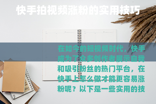 在如今的短视频时代,快手成为了众多创作者展示自我和吸引粉丝的热门平台,在快手上怎么做才能更容易涨粉呢?以下是一些实用的技巧。