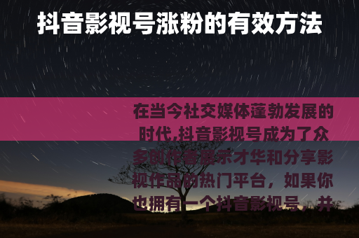 要想让自己的抖音影视号涨粉,需要不断地努力和创新,持续提供优质的内容,打造独特的账号风格,善于利用平台的各种优势,积极与其他创作者和观众互动,只要坚持下去,相信你的抖音影视号一定能够吸引越来越多的粉丝,在抖音的世界里绽放光彩。