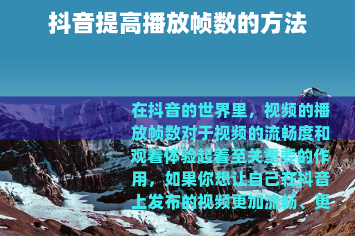 在抖音的世界里,视频的播放帧数对于视频的流畅度和观看体验起着至关重要的作用,如果你想让自己在抖音上发布的视频更加流畅、更具吸引力,那么提高播放帧数是一个值得关注的方面。