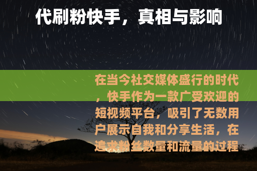 在当今社交媒体盛行的时代,快手作为一款广受欢迎的短视频平台,吸引了无数用户展示自我和分享生活,在追求粉丝数量和流量的过程中,一种名为“代刷粉快手”的现象逐渐兴起,引发了诸多讨论。