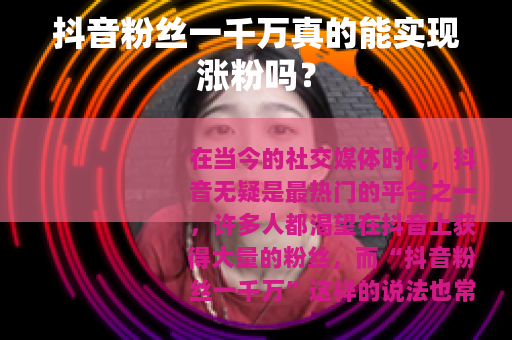 在当今的社交媒体时代,抖音无疑是最热门的平台之一,许多人都渴望在抖音上获得大量的粉丝,而“抖音粉丝一千万”这样的说法也常常引起大家的关注和讨论,抖音粉丝一千万真的能涨粉吗?