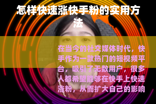 在当今的社交媒体时代,快手作为一款热门的短视频平台,吸引了无数用户,很多人都希望能够在快手上快速涨粉,从而扩大自己的影响力,那么怎样涨快手粉呢?以下是一些实用的方法。
