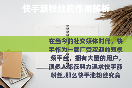 在当今的社交媒体时代,快手作为一款广受欢迎的短视频平台,拥有大量的用户,很多人都在努力追求快手涨粉丝,那么快手涨粉丝究竟有啥作用呢?