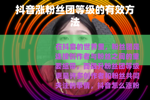 想要在抖音上涨粉丝团等级,需要不断努力和创新,通过多种方式提高粉丝的活跃度和忠诚度,只要坚持不懈地做好以上几点,相信你的粉丝团等级一定会逐步提升,在抖音的创作之路上取得更好的成绩。