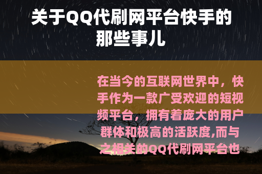在当今的互联网世界中,快手作为一款广受欢迎的短视频平台,拥有着庞大的用户群体和极高的活跃度,而与之相关的QQ代刷网平台也逐渐进入了人们的视野。