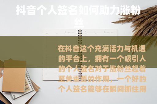 抖音个人签名是涨粉丝的一个重要工具,通过精心设计一个简洁明了、个性独特、具有互动性且紧跟潮流的个人签名,能够吸引更多用户的关注,帮助你在抖音上快速涨粉,让你的创作之路更加精彩。