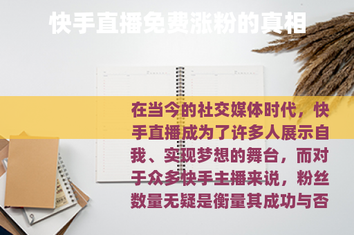 在当今的社交媒体时代,快手直播成为了许多人展示自我、实现梦想的舞台,而对于众多快手主播来说,粉丝数量无疑是衡量其成功与否的重要标准之一。“快手直播免费涨粉图”这样的概念便应运而生,吸引了无数人的目光。