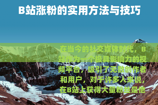 希望以上这些方法和技巧能够帮助你在B站实现涨粉的目标,让你在这个充满活力的平台上获得更多的关注和认可。