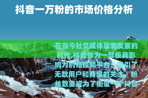 在当今社交媒体蓬勃发展的时代,抖音作为一款极具影响力的短视频平台,吸引了无数用户和商家的关注,粉丝数量成为了衡量一个抖音账号价值的重要指标之一,那么抖音一万粉究竟多少钱呢?