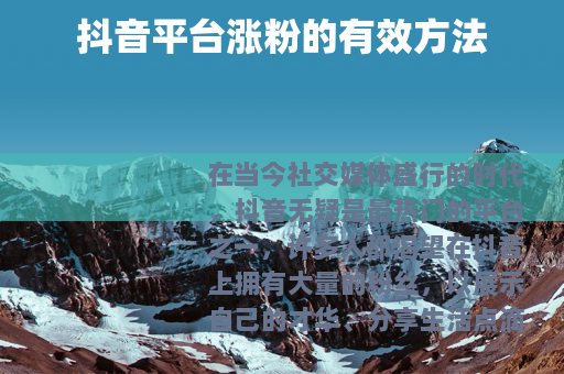 在当今社交媒体盛行的时代,抖音无疑是最热门的平台之一,许多人都渴望在抖音上拥有大量的粉丝,以展示自己的才华、分享生活点滴或推广自己的业务,在抖音平台如何涨粉丝呢?以下是一些实用的方法。