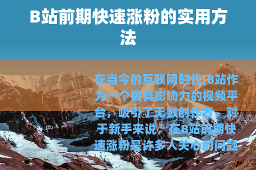 在当今的互联网时代,B站作为一个极具影响力的视频平台,吸引了无数创作者,对于新手来说,在B站前期快速涨粉是许多人关心的问题,以下是一些有效的方法,可以帮助你在B站的起步阶段迅速积累粉丝。 质量是关键,要确保你的视频内容有足够的吸引力和价值,这意味着你需要找到自己擅长且有热情的领域,比如游戏、美食、科技、生活记录等,然后深入挖掘,制作出专业、有趣、独特的视频,如果你擅长游戏,那么可以制作精彩的游戏攻略、搞笑的游戏实况解说等,只有当你的内容能够真正满足用户的需求,让他们觉得观看你的视频是有收获的,他们才会愿意关注你并持续观看你的其他作品。