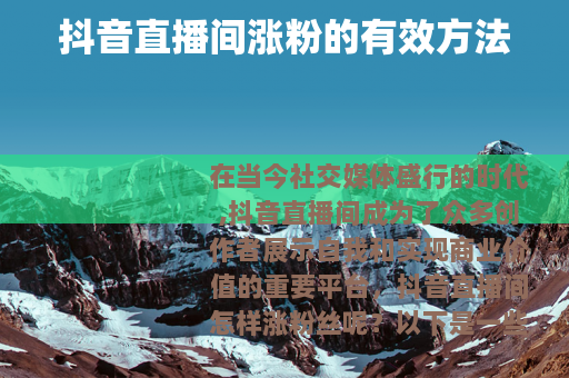 在当今社交媒体盛行的时代,抖音直播间成为了众多创作者展示自我和实现商业价值的重要平台,抖音直播间怎样涨粉丝呢?以下是一些实用的方法。