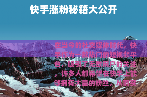 在当今的社交媒体时代,快手作为一款热门的短视频平台,吸引了无数用户的关注,许多人都希望在快手上能够拥有大量的粉丝,从而实现自己的创作价值和社交影响力,快手怎么涨粉丝呢?