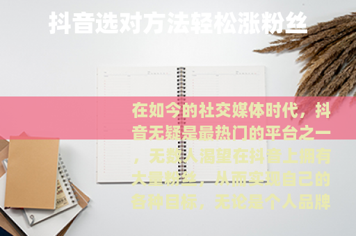 在如今的社交媒体时代,抖音无疑是最热门的平台之一,无数人渴望在抖音上拥有大量粉丝,从而实现自己的各种目标,无论是个人品牌的打造还是商业价值的提升,如何在抖音上实现粉丝的增长呢?只要选对方法,涨粉并非难事。