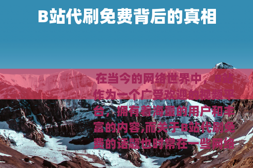 在当今的网络世界中,B站作为一个广受欢迎的视频平台,拥有着海量的用户和丰富的内容,而关于B站代刷免费的话题也时常在一些网络角落中被提及。