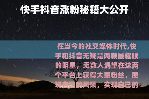 想要在快手抖音上涨粉丝,需要付出努力和时间,不断优化自己的内容和运营策略,只要坚持下去,相信你一定能在这两个平台上收获属于自己的粉丝群体,实现自己的目标。