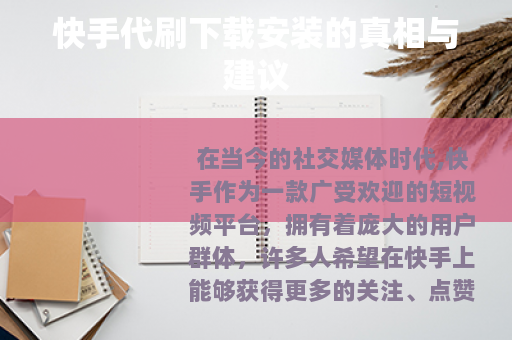当我们在网络上搜索快手代刷相关内容时,会发现有各种各样的代刷服务声称可以帮助用户快速实现增加粉丝量、点赞数等目标,在考虑下载安装这些所谓的代刷工具时,我们需要谨慎对待。