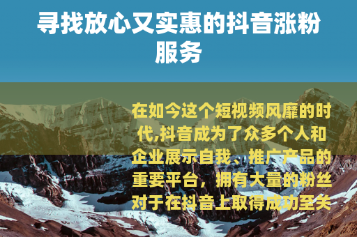 在如今这个短视频风靡的时代,抖音成为了众多个人和企业展示自我、推广产品的重要平台,拥有大量的粉丝对于在抖音上取得成功至关重要,很多人都在寻找能够帮助自己快速涨粉且价格合理的服务,到底放心的抖音涨粉丝哪家便宜呢?