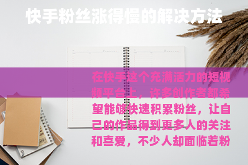 在快手这个充满活力的短视频平台上,许多创作者都希望能够快速积累粉丝,让自己的作品得到更多人的关注和喜爱,不少人却面临着粉丝涨得慢的困扰,快手粉丝涨得慢该怎么办呢?